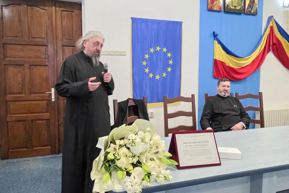 Momentul aniversar a fost îmbogățit de cuvântul Arhimandritului dr. Mihail Daniliuc, care a realizat o prezentare sugestivă a activității Părintelui profesor Vasile Păvăleanu, surprinzând-o atât din perspectiva fostului elev, cât și din cea a colegului de cancelarie. Într-o expunere caldă și echilibrată, părintele arhimandrit a subliniat faptul că profesorul de Dogmatică aniversat aparține acelei categorii rare de dascăli pentru care teologia nu este doar o disciplină de predat, ci un mod de a trăi și de a mărturisi credința Bisericii.